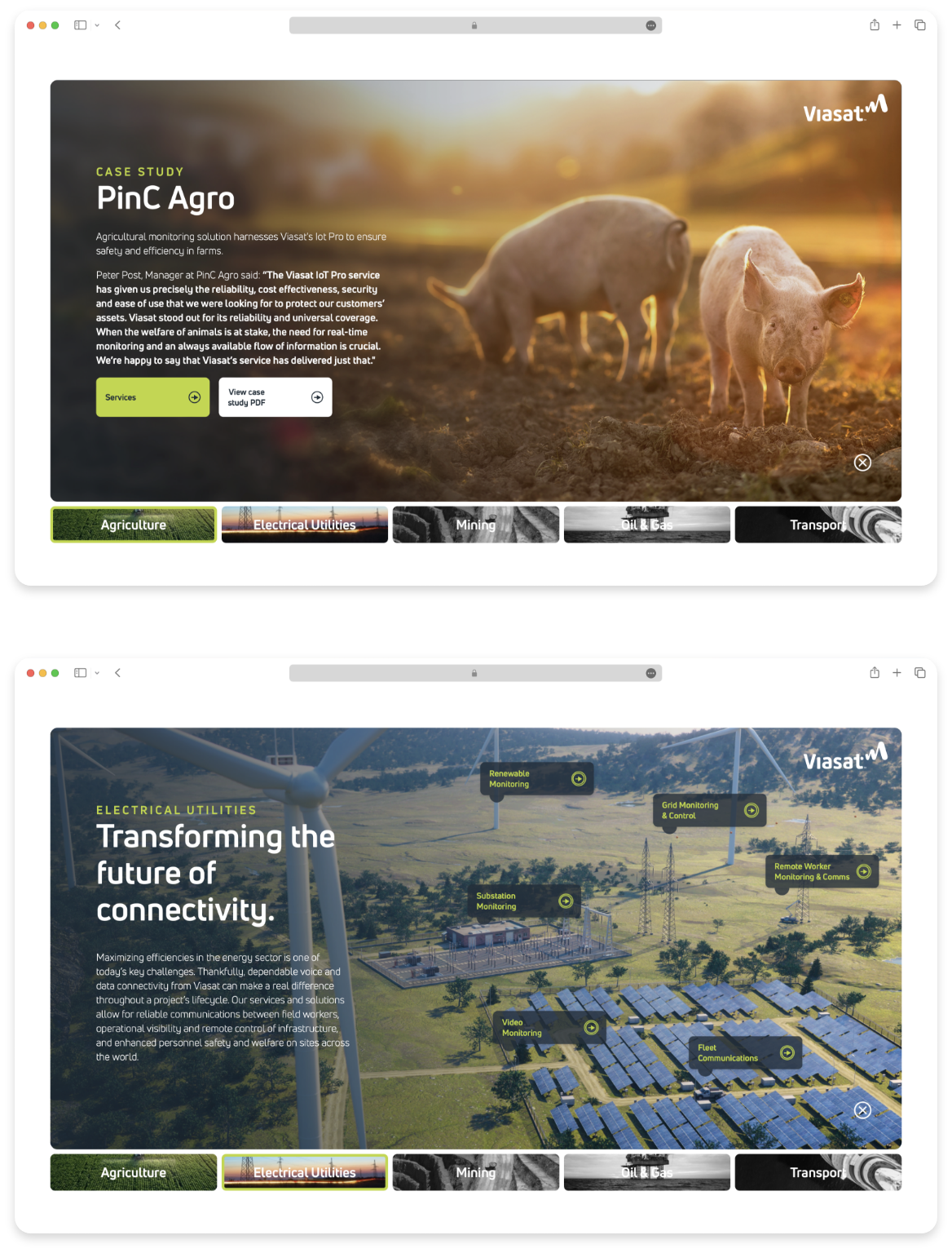 In alignment with JPC’s creative vision, the project successfully addressed the challenges, delivering a versatile platform that effectively showcases Viasat’s solutions. The implemented product filtering enhances user interaction, while the replicated design maintains brand consistency. The scalable implementation ensures optimal performance as both an application and a website, maximising accessibility and usability for‑users.